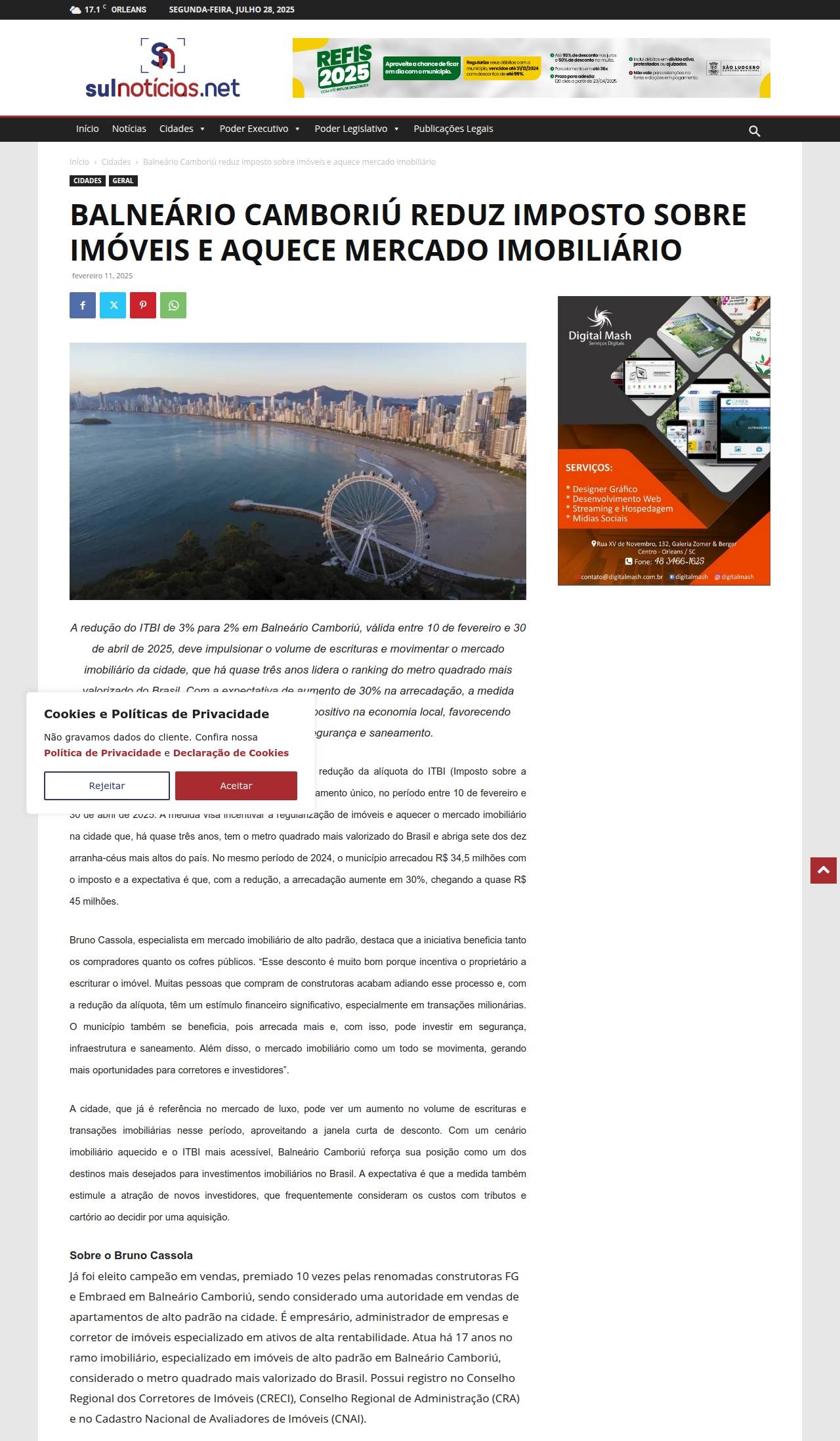 Balneário Camboriú reduz imposto sobre imóveis e aquece mercado imobiliário SulNotícias.NET