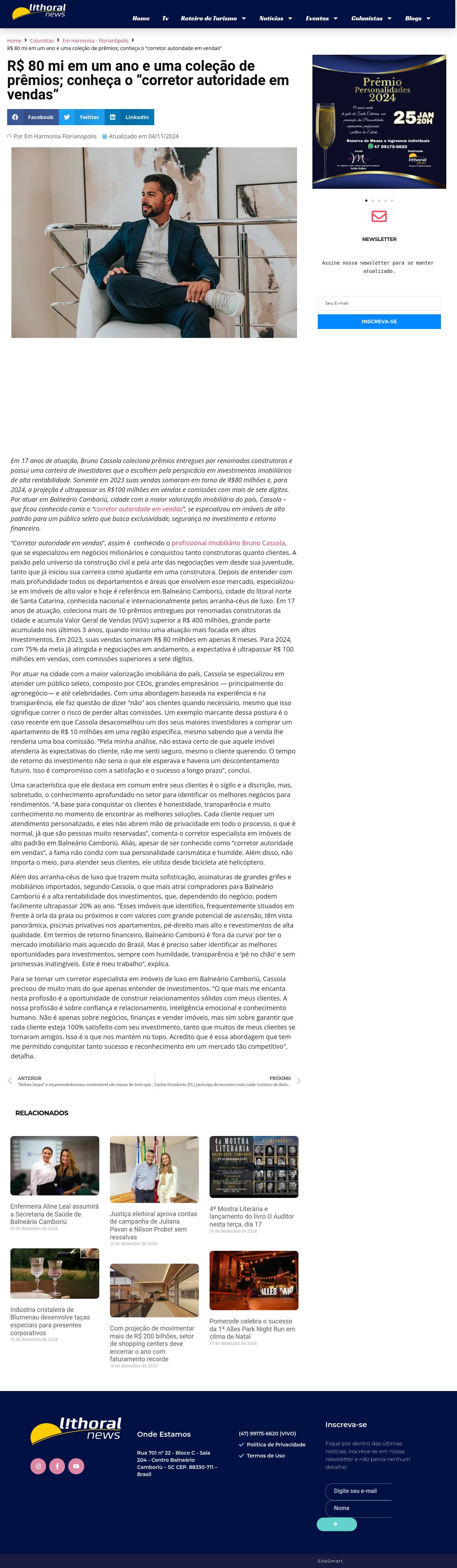 R$ 80 mi em um ano e uma coleção de prêmios; conheça o "corretor autoridade em vendas" - Lithoral News